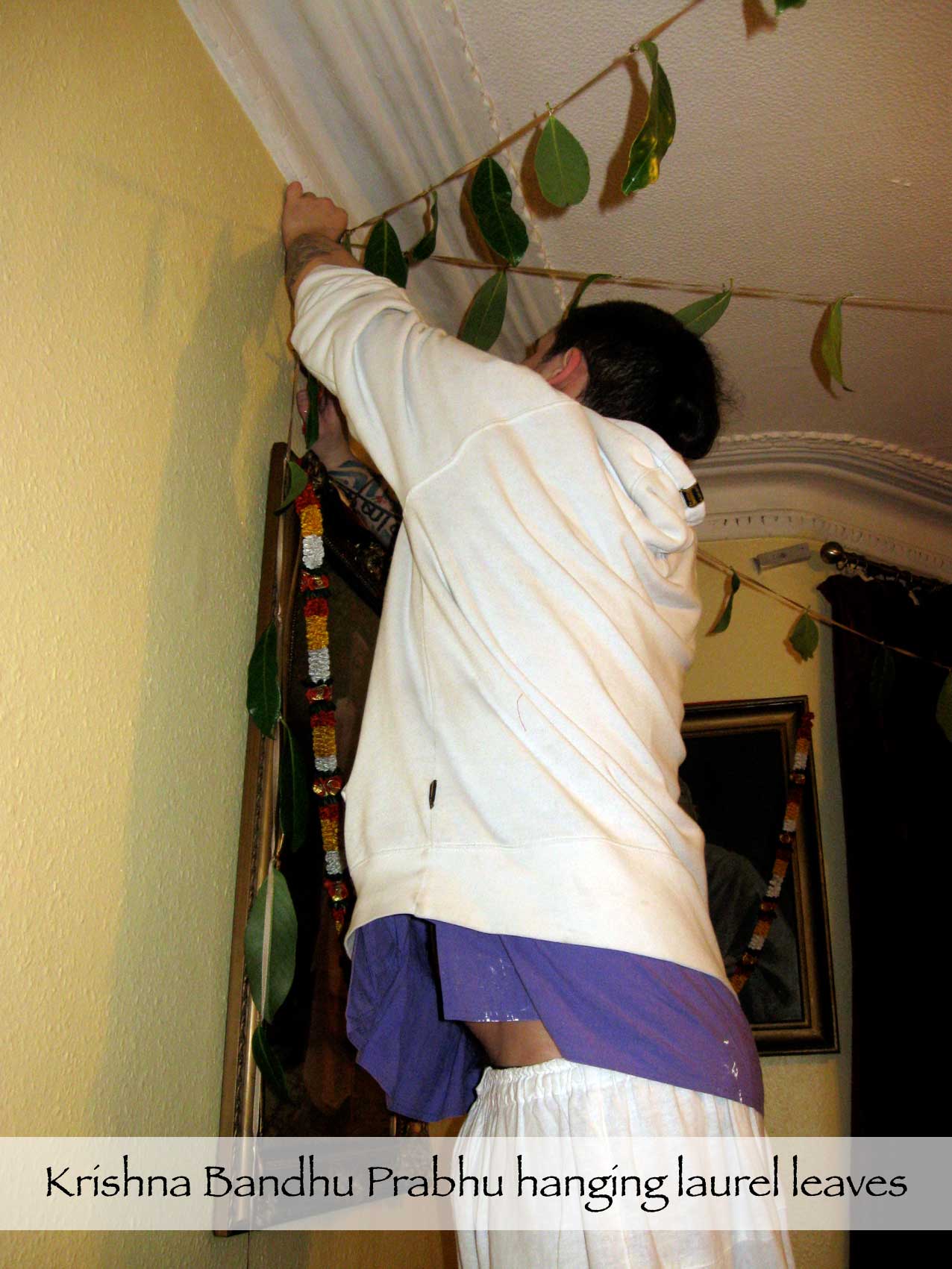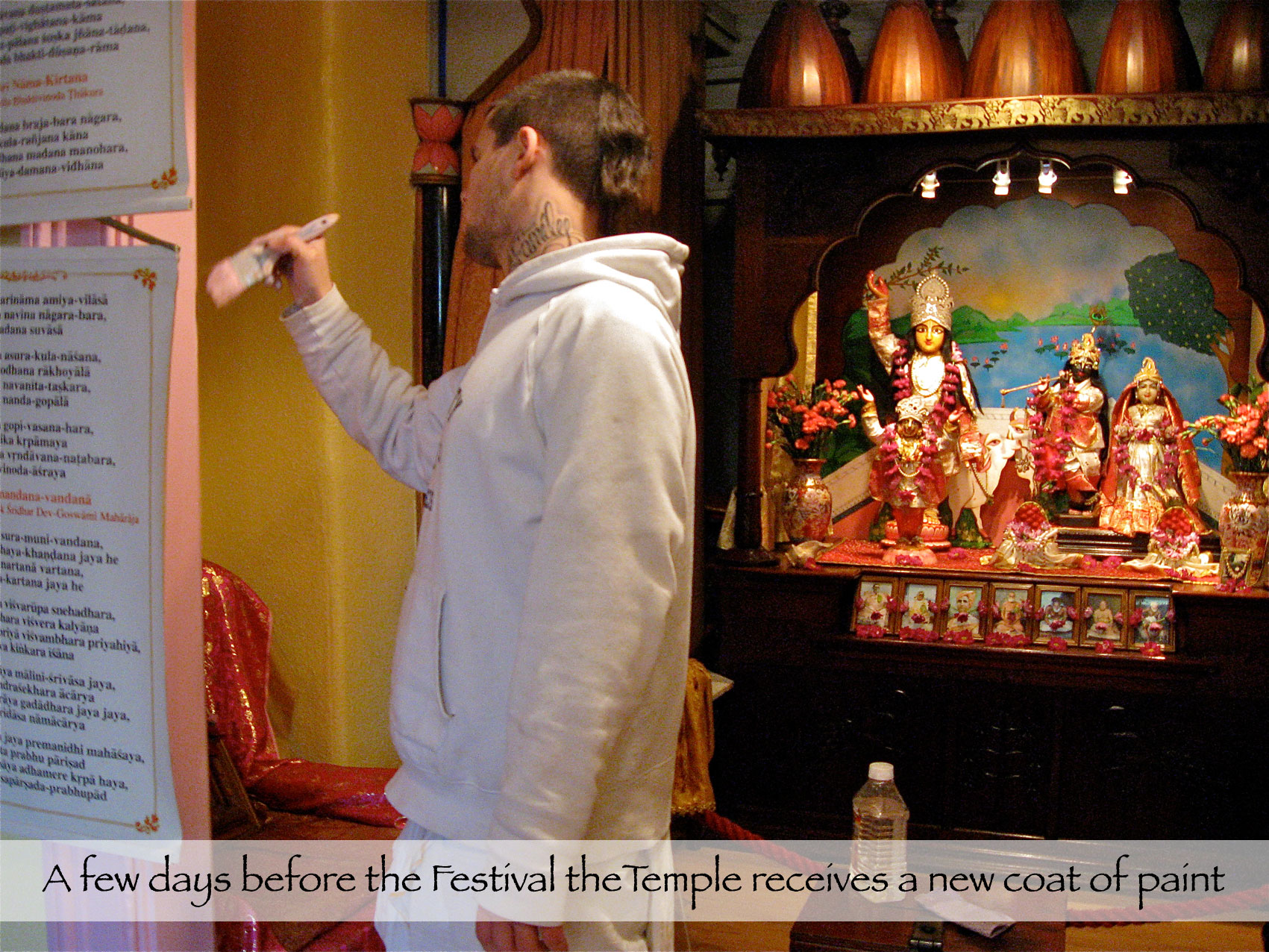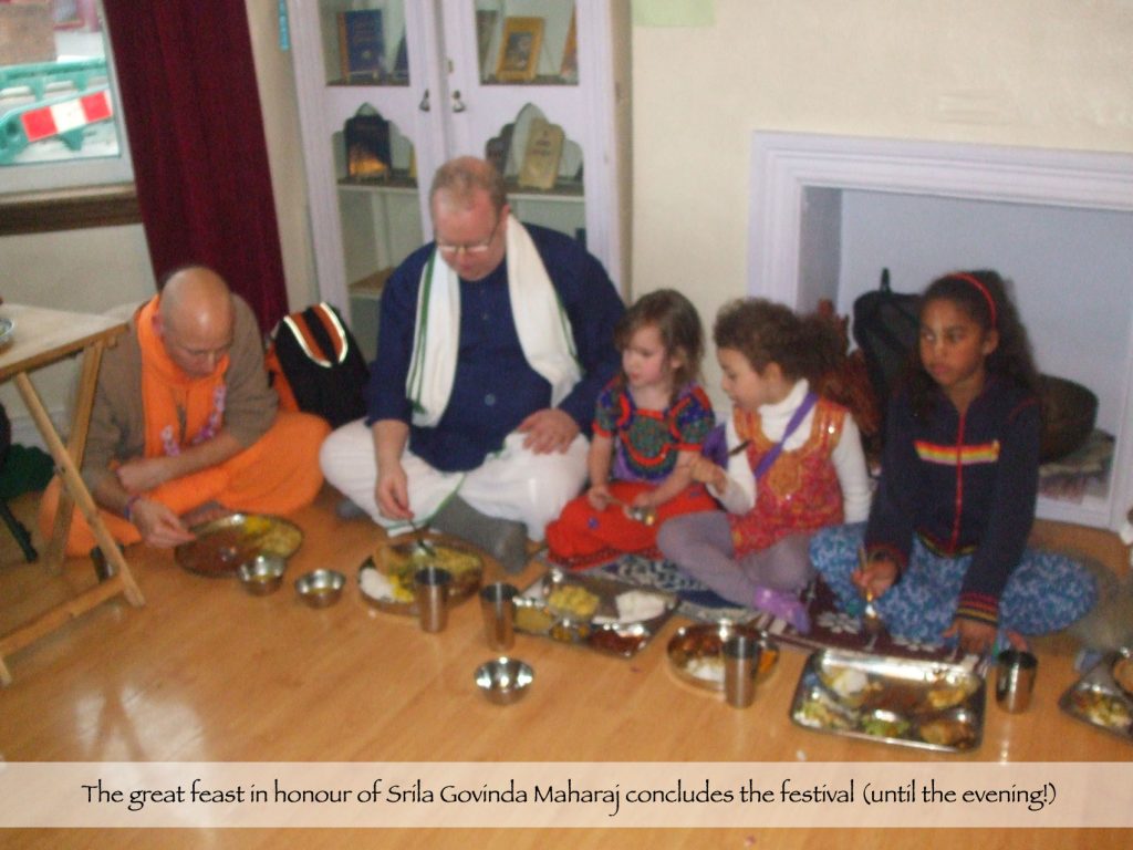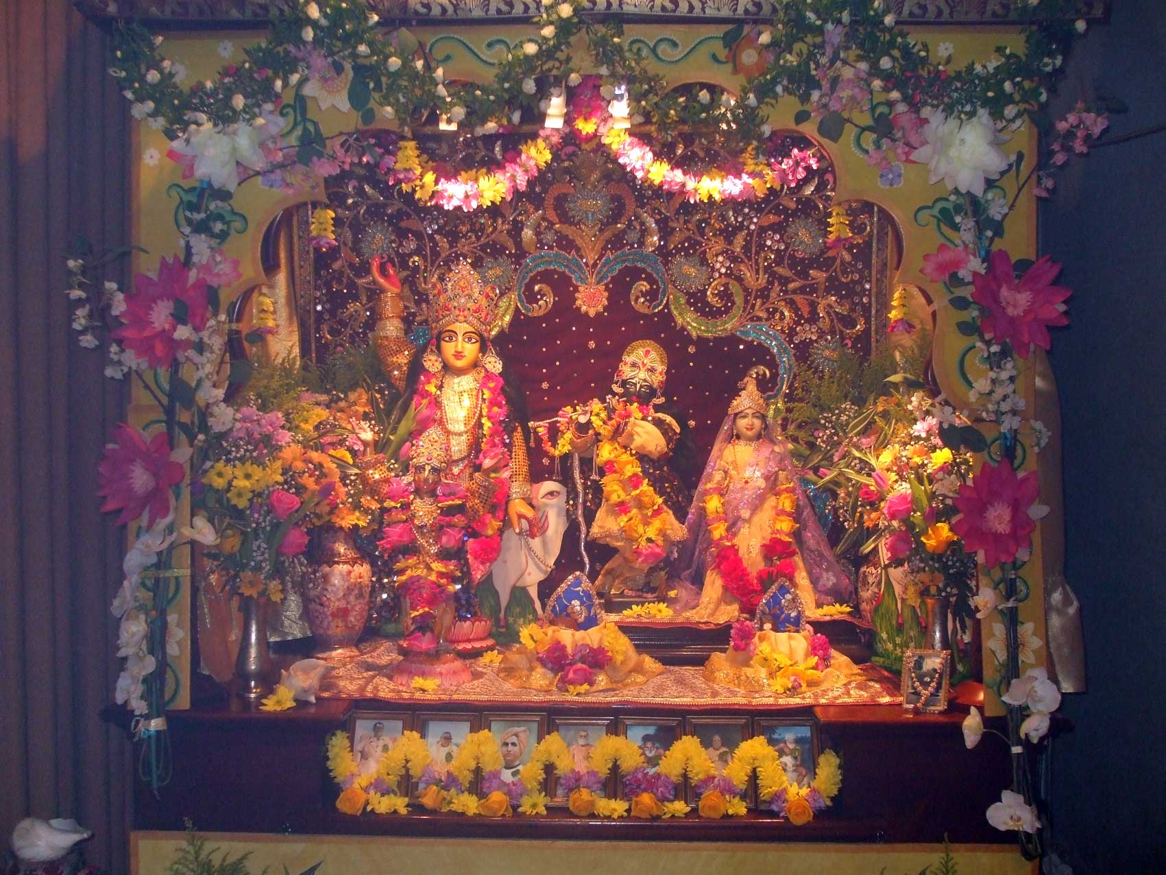 Instead of the traditional worship of Indra, the god of the elemental powers, Lord Krishna persuaded his father Nanda Maharaj to worship Govardhan. On this day the devotees offer Annukut (literally a mountain of foodstuffs) to the Lord and recall His pastimes of lifting the Hill to give shelter to the residents of Vrindavan from the floods sent by Indra to punish them for neglecting his worship.