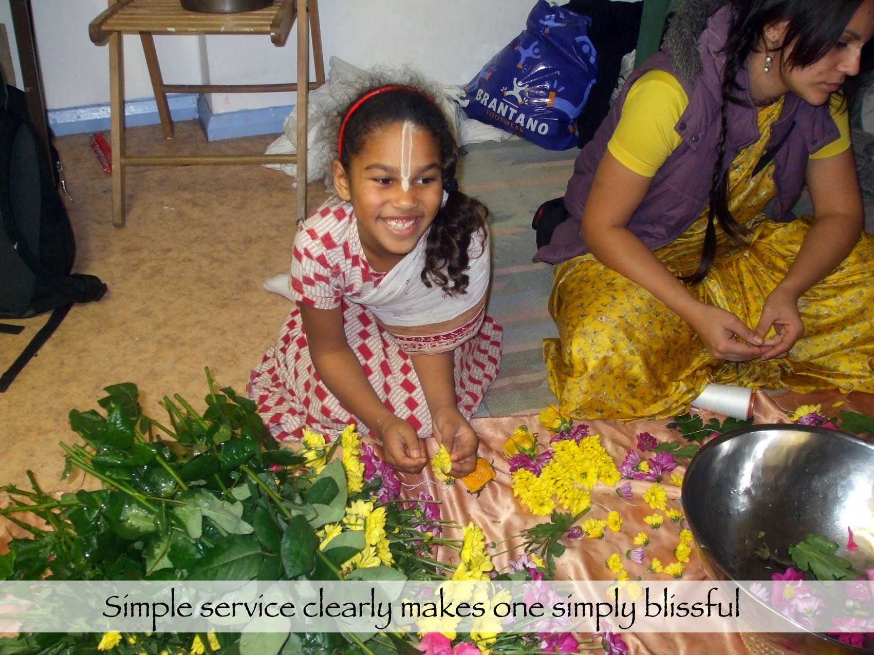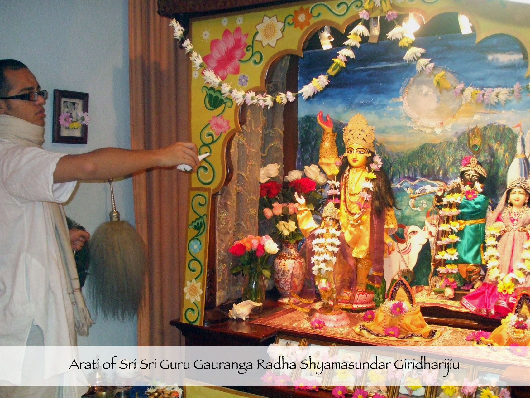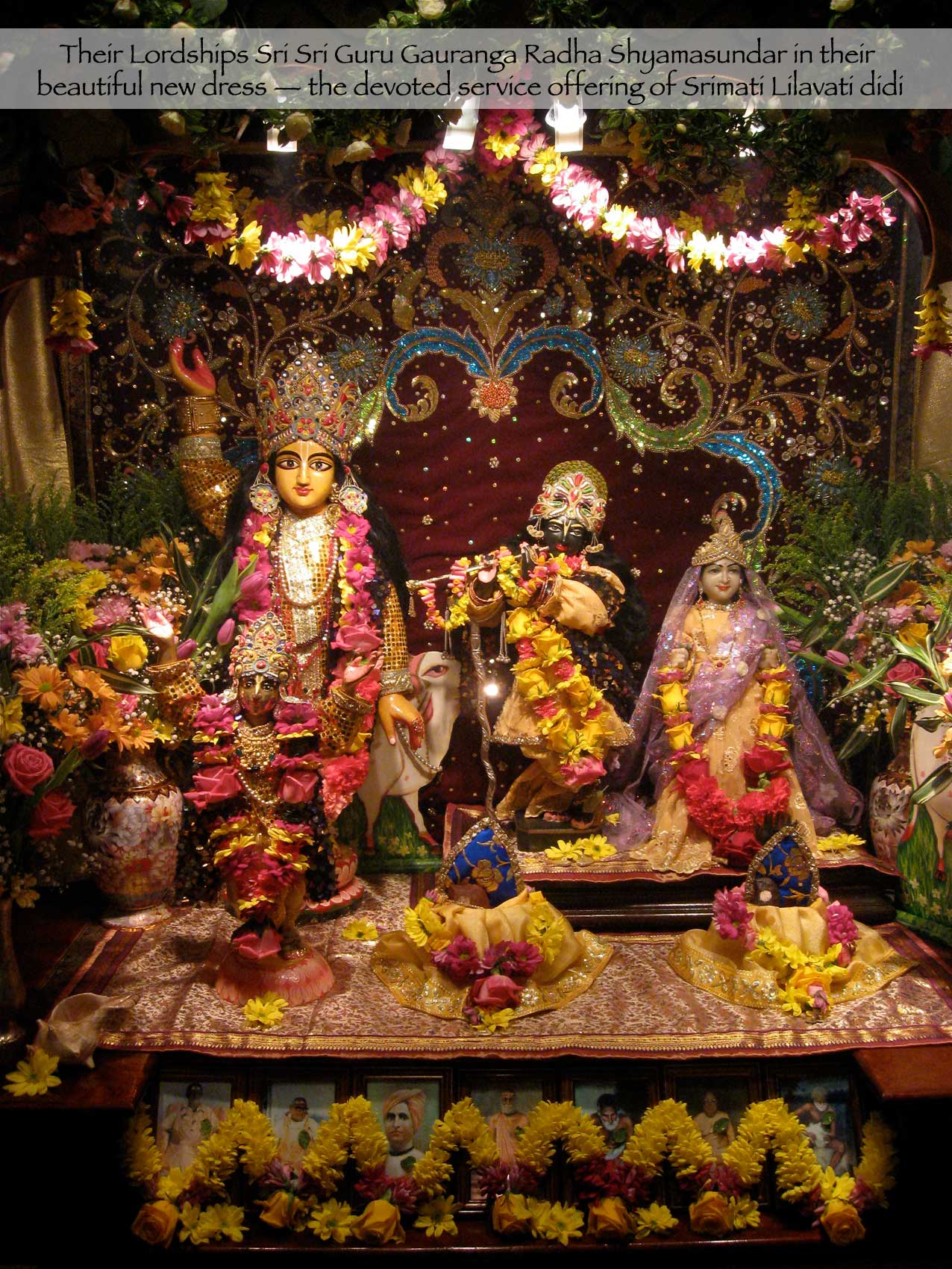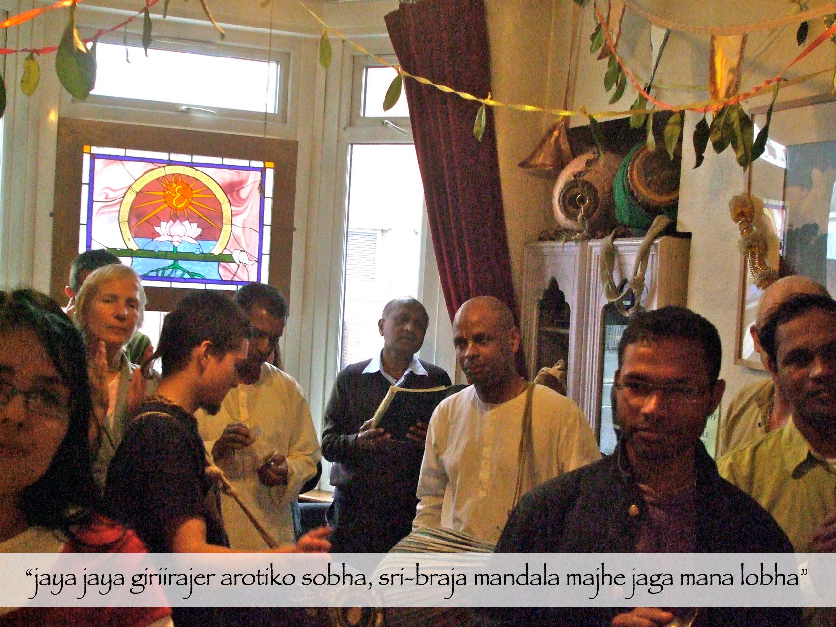 A part of the infinite is also infinite. The Govardhana-sila represents Krishna as the master and keeper of cows. Within Govardhana is that mild and soft conception of God the Beautiful. We beg for His mercy, His affection, and His gracious glance upon us. That may save us from the negative influence of this material environment. When we try to put a stop to our material form of life and take our course towards Godhead, Krishna consciousness, neglecting the imperative duties that are upon us, so many difficulties may come to trouble us, to trap us in our journey towards the ultimate truth. But if we stick to the order of Krishna, He will protect us. Krishna confirms this in Bhagavad-gita: