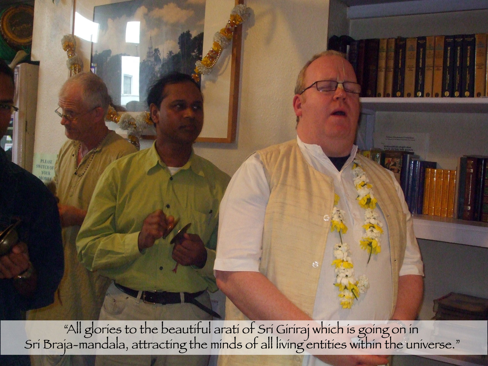 From this verse of Srimad-Bhagavatam, we can understand the position of the Lord’s pastime at Govardhana. It is also described here that when the Vrajavasis worshipped Him and engaged in sacrifice for His satisfaction, they saw Govardhana Hill as the Supreme Person, extending His hands, accepting the things offered to Him, and feeding Himself.