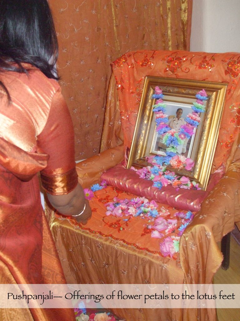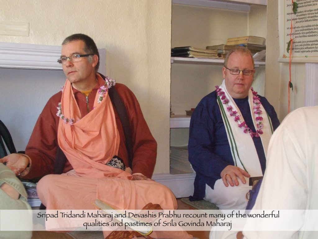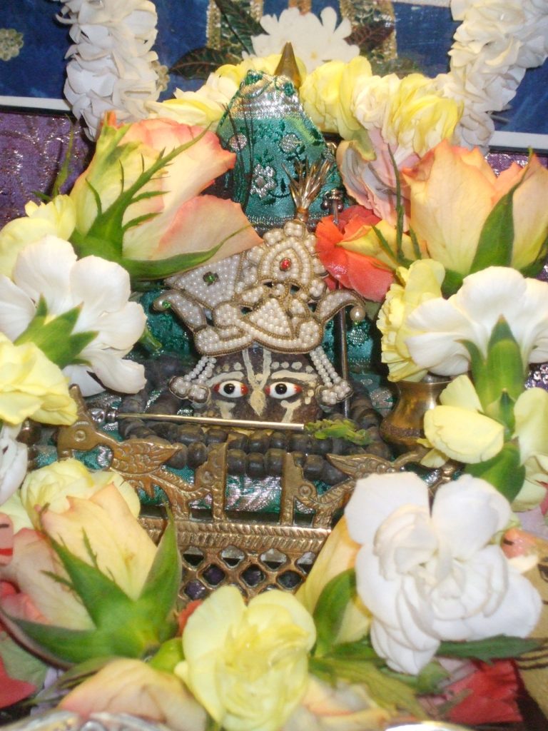 At that time, Krishna pointed out, “You see! You thought that Govardhana Hill was only a heap of stone. No— it is living, it is the Supreme Personality of Godhead.” At that time, Krishna revealed Himself as Govardhana Hill and showed how it is also His extended self. According to authorities in our line, Radha-kunda is the extended self of Srimati Radharani and Govardhana is the extended self of Krishna. And so we worship a stone from Govardhana Hill, a part of Giridhari, as Krishna Himself. We may understand from this that a partof the infinite is infinite. And yet so feeble is our ordinary vision that although Govardhana-sila is a part of the infinite, and therefore also infinite, to our material vision it is only a piece of stone.