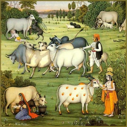 By satisfying Indra, favorable rains would come and there would be sufficient grass. The cows could then graze easily on the grass and generate milk profusely. The gopas, the cowherd men and their families, used to make different preparations from the milk, sell them in the marketplace, and in that way earn their livelihood.