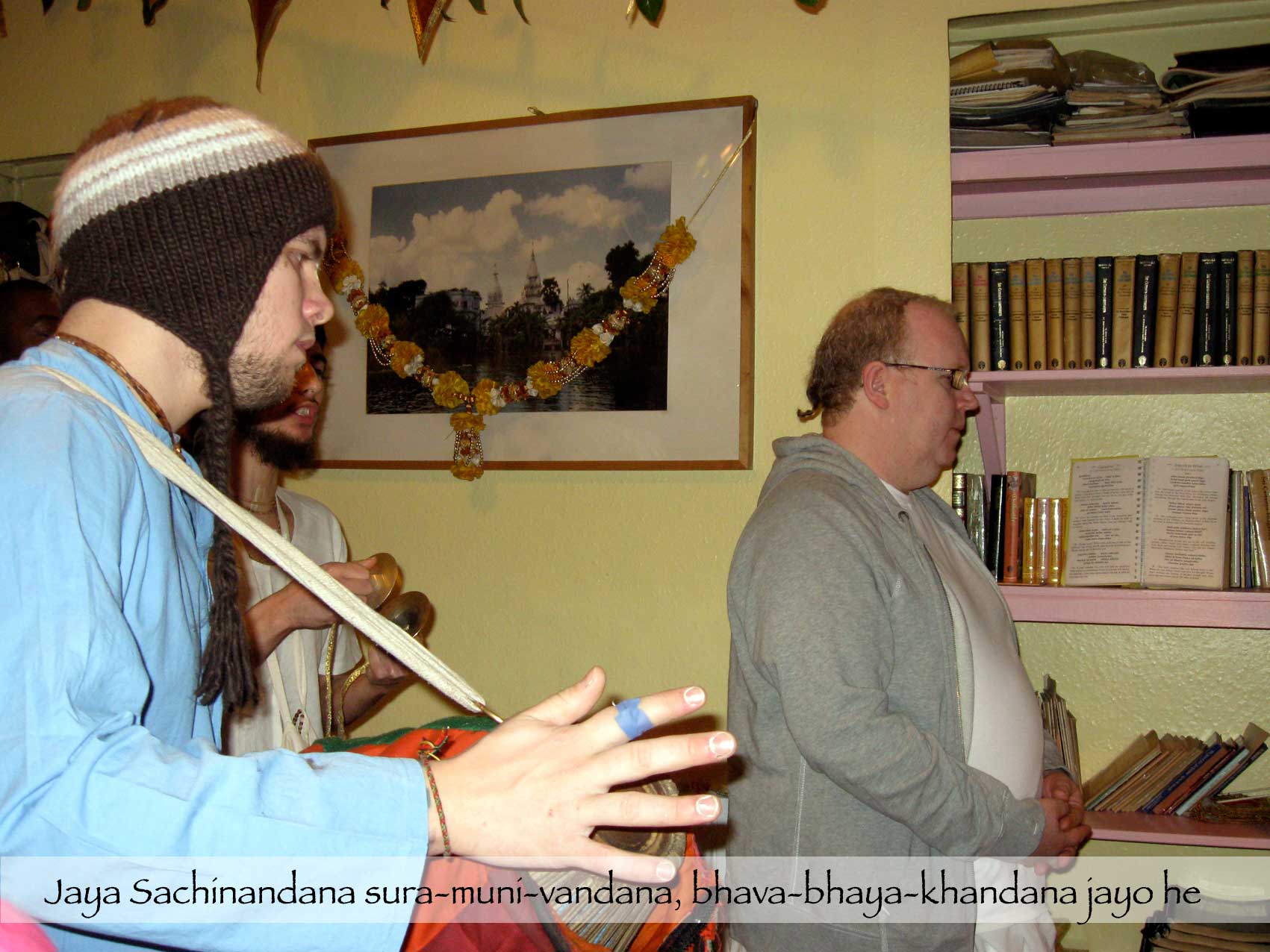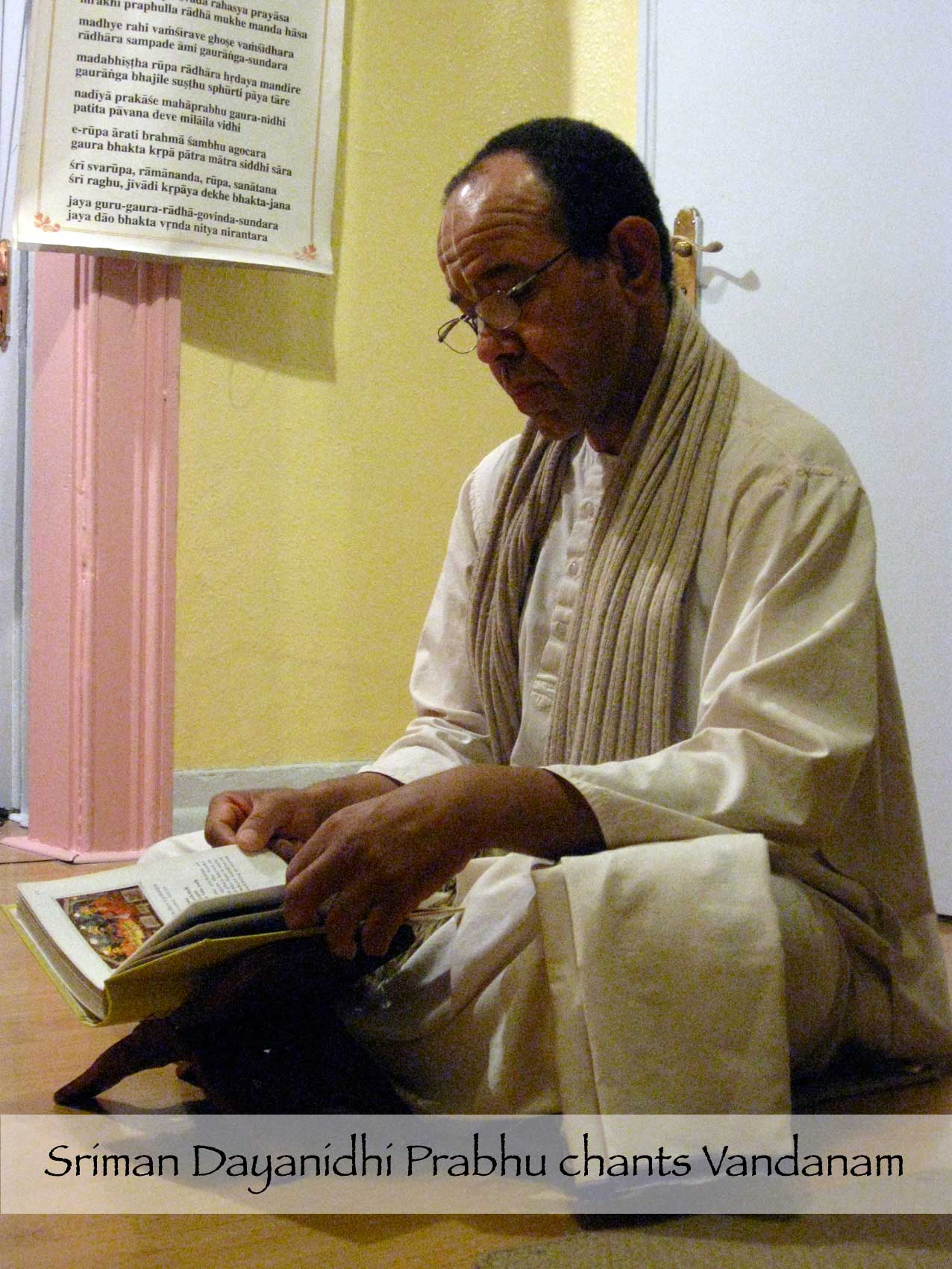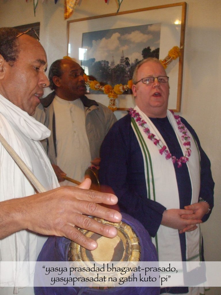 And so Nanda Maharaja prays in this verse, “May that lord of the cows be satisfied by us. Who is Indra when compared to Krishna? Krishna is the master of Indra. And yet He has appeared as the master of cows; the Supreme Absolute Truth has accepted a simple position as the keeper of cows. Superficially, He is a mere cowherd boy. But let that cowherd boy, who holds within Him the power of controlling the whole universe, be satisfied with us. We want to worship that Lord who has taken the humble position of the king of the cows.”
