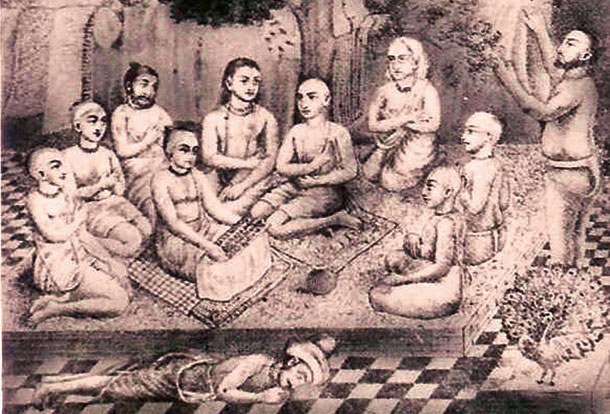The next generation of the Gaudiya line was headed by Srinivas Acharyya, Shyamananda Pandit and Narottam Das Thakur. They were followed in the late 17th Century by Vishwanath Chakravarti Thakur and in the early 18th Century, Baladev Vidyabhusan who firmly established the Gaudiya Sampradaya by authoring the famous Govinda Bhasya before the Royal Court of Jaipur.